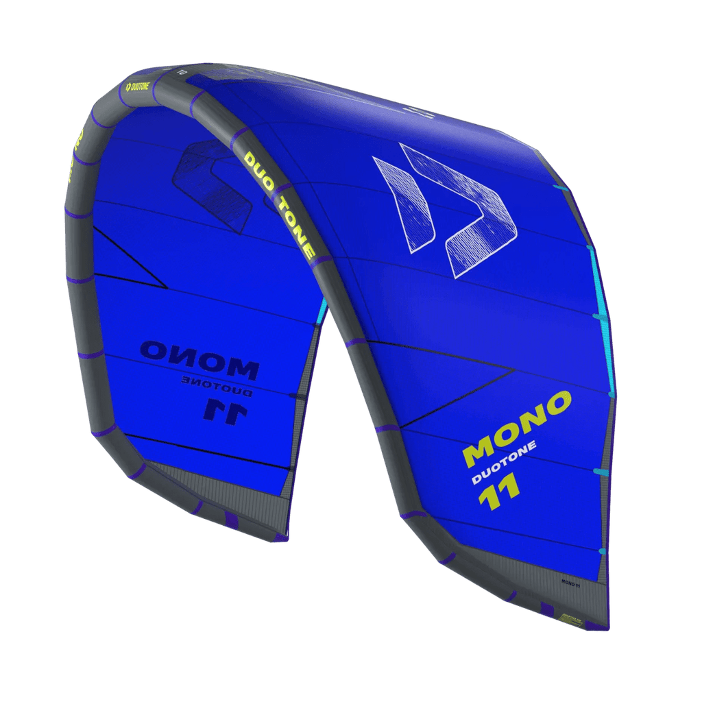 The Duotone Mono is crafted for the responsive, lightweight flying experience that freeriders and foil fanatics crave. With its easy-travel, single-strut design, and superior in low-wind conditions, this kite is for anyone seeking versatility, ease of use, and dynamic performance in every freeride or foil session. Embracing a single-strut design, the Mono stands out for its lightweight simplicity, making it extraordinarily convenient for travel and quick setups. This kite is streamlined for those who desire efficiency in light wind conditions and the easiest restart in the sky. Its compact size and easy packability without sacrificing performance make it an essential for any kiteboarding journey. One of the Mono's hallmarks is its user-friendly nature, enabling even newbies to master the craft of kiteboarding through effortless relaunch capabilities and forgiving flying characteristics. Yet, this is a kite that doesn’t shy away from excitement. It boasts a quick turning speed, offering a dynamic and responsive ride that more experienced riders will relish. Direct steering and precise control allow for deft maneuvering, making it ideal for action filled foil rides as well as fluid freeriding on a twintip or even surfing some waves. Add to that progressive power development and several tip tuning options and you have a kite that can easily adapt to your riding style, giving you reliable performance every time you hit the water. Constructed with proven original Leading Edge and Strut materials, the Mono ensures durability and reliability, all while its optimized construction significantly reduces weight, enhancing overall performance.