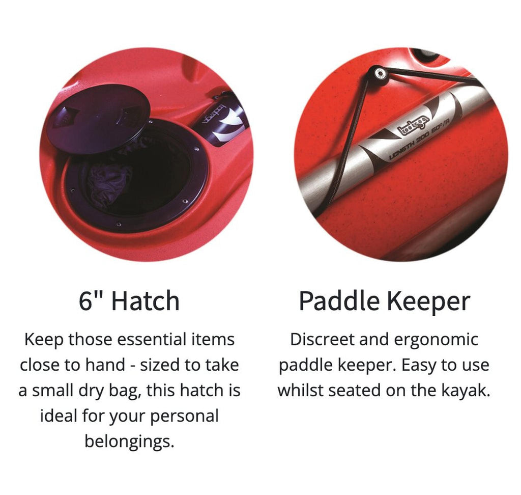 With two full size seats both with integrated 6" waterproof hatches, sports bottle holders, a large carry area at the rear, paddle keepers, built in anchor points, the Pulse can be accessorised to fit your paddling needs. The space between the seats can even be used as a third smaller seat.