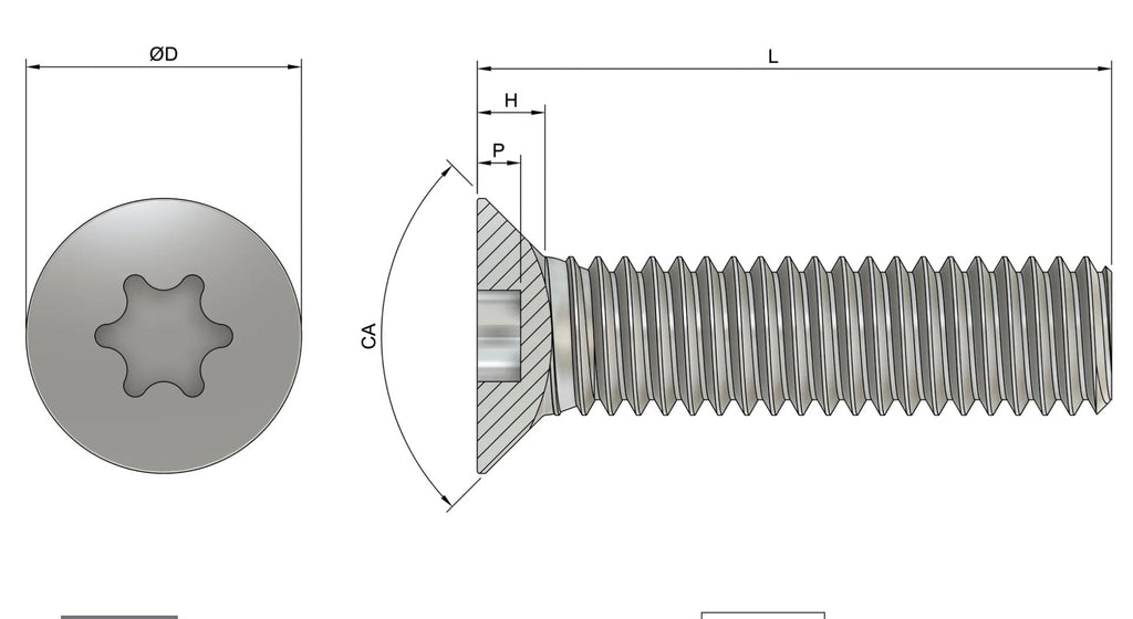 Stainless Steel M8 T45 Torx Countersunk Screws (ISO 14581) - Marine Stainless Steel (A4) 3BS