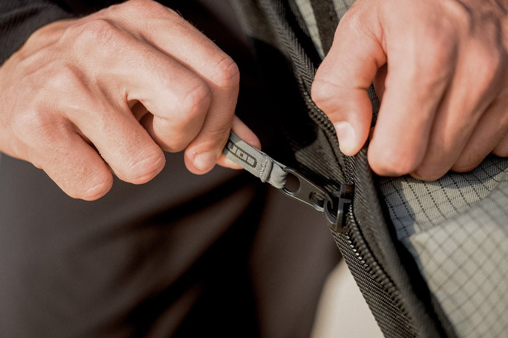 100% recycled PU coated PET 450D:A fabric made entirely from recycled polyethylene terephthalate (PET) fibers with a 450 denier thread density, coated with polyurethane (PU) for added water resistance and structural durability. Accessory Pocket:Fixed storage opportunitiy in the bag for having all small but essentiall tools, screws and more handy whenever you need them. Tool pockets:Two durable, Velcro-secured compartments integrated into the top sheet of the boardbag. Designed to store screws, tools, and small accessories, they keep all essential parts organized and easily accessible, so you're always ready to ride. 5mm foam padding:Thin padding protects against daily wear & tear of traveling. For extra protection add another layer of wetsuits or towels. Off white PE on outside bottom to keep inside cool: Shoulder strap core compatible:Attach any shoulder strap with two carabiners to the bag.