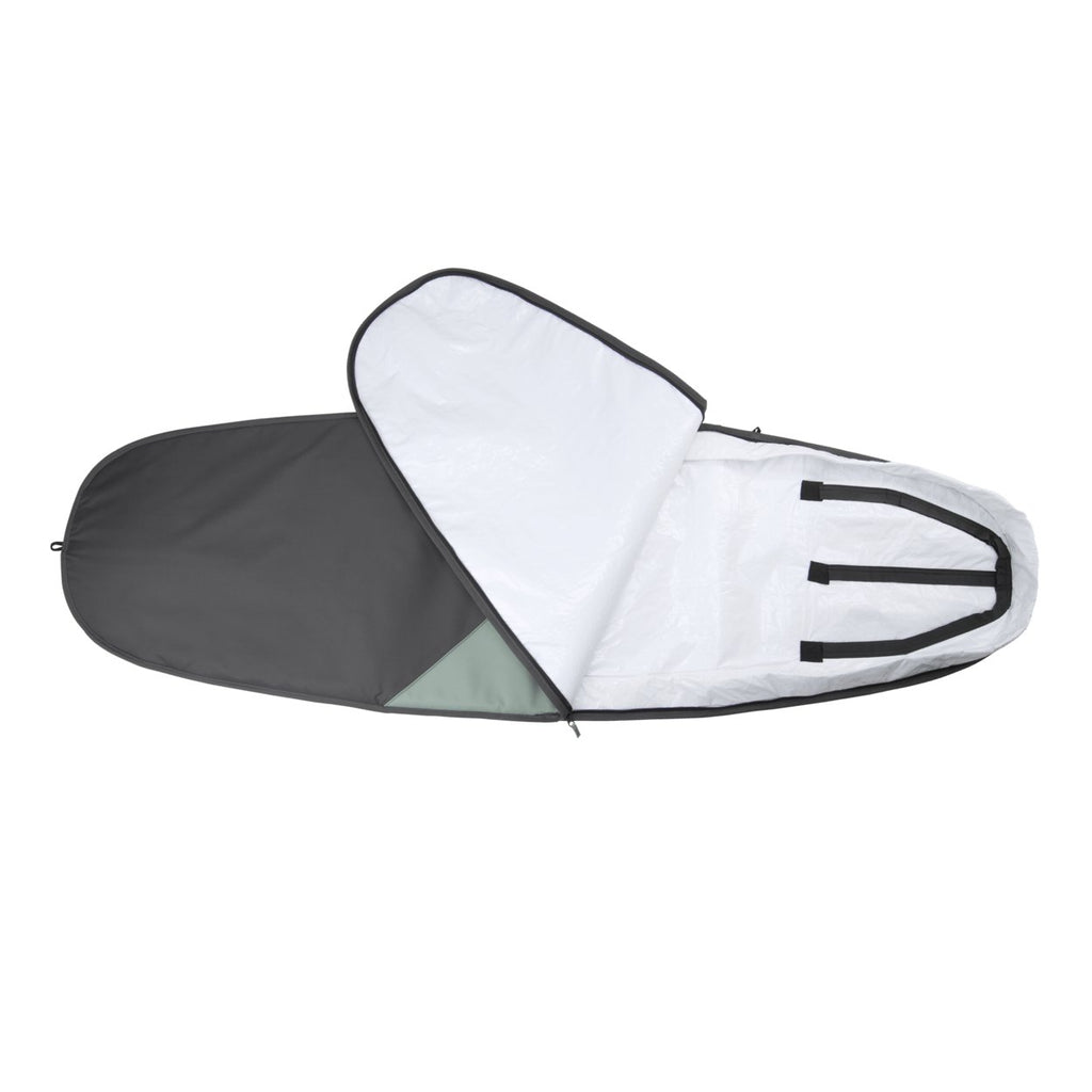 Want to travel light? The Windsurf Boardbag Core Stubby is your minimalist companion for protecting your board from the car ride all the way down to the beach. A durable 100% recycled shell & 5mm padding all around guard your gear against dings & scratches and keeps the sand off your car seats. On the bottom off-white PE reflects heat & ensures a cool climate inside your bag.